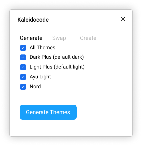 1. In the "Generate" tab, select the themes you'd like to create or select "All themes."